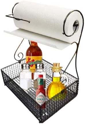 17.5" Versatile Indoor/Outdoor Table Top Metal Paper Towel Holder With Basket Great indoors and outdoors - Great indoors in the kitchen, bathroom,...