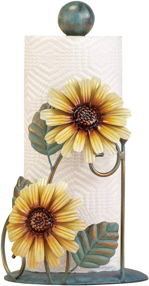 This unique paper towel holder features beautifully detailed sunflowers and greenery. The dimensional flowers are hand-painted with an antique fini...