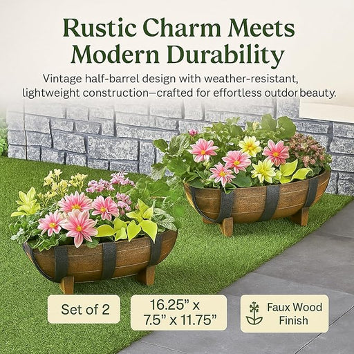 Our Decorative Outdoor Half Barrel Planters add a classic look to your outdoor space! Each has a large opening which makes it easy to plant bigger ...