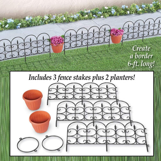 Our Decorative 5 Piece Garden Fence Border with Planters is ideal for edging gardens, landscaping, pathways or create a border around a tree. Set i...