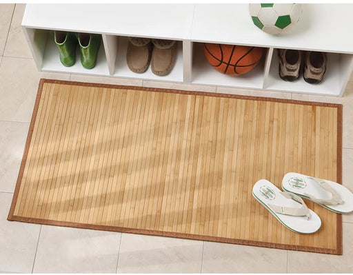 Genuine gleaming bamboo slats. Beautifies & decorates as it protects tiles, carpeting, wood and other custom floorings from wear and tear. Bamb...